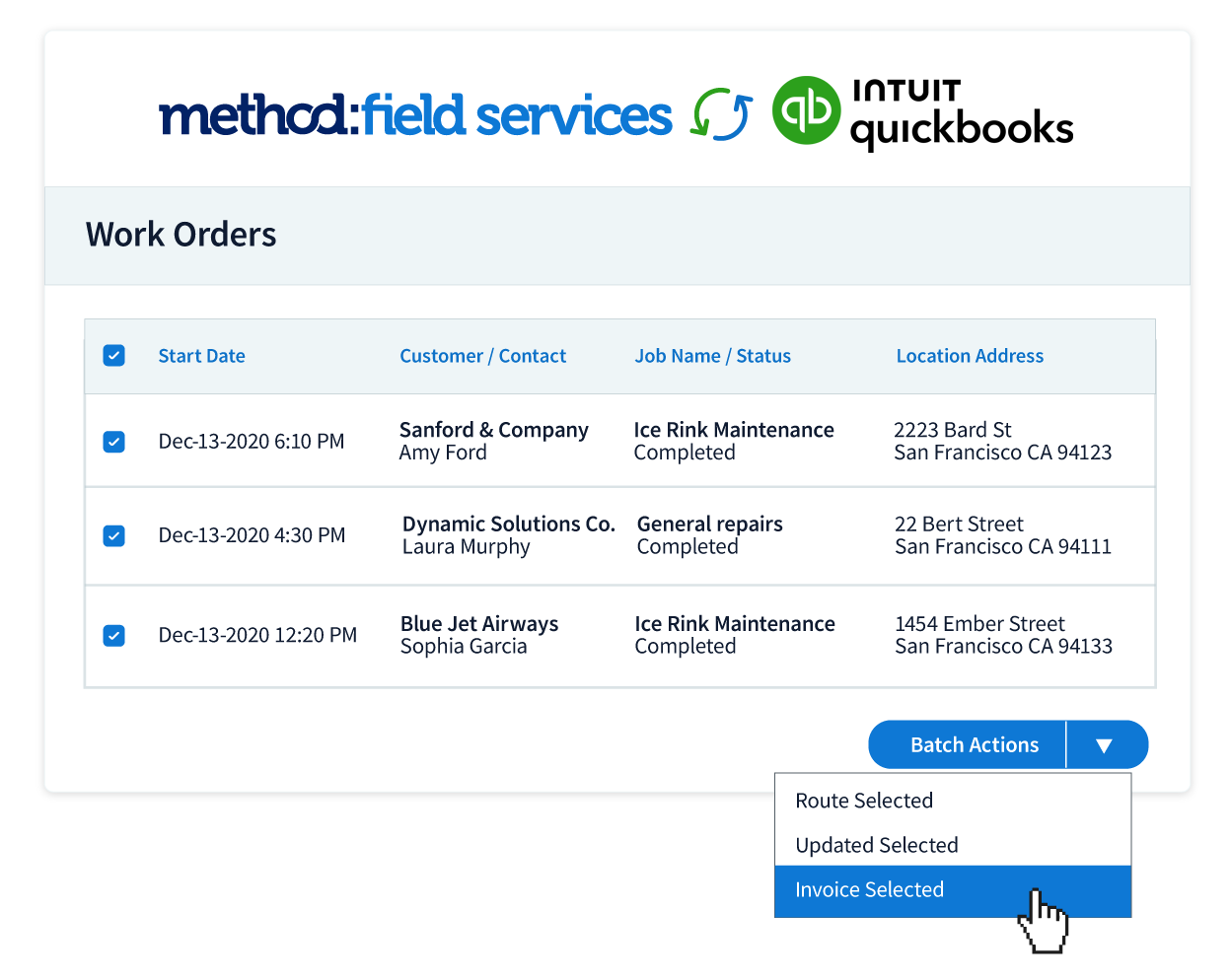 Create work orders using QuickBooks data, then dispatch them from one centralized location.