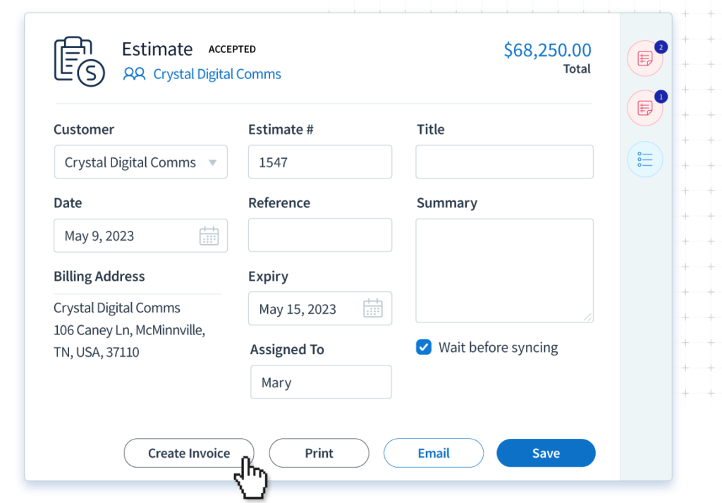 Once your prospect is satisfied with the quote, sync both your quote and new customer to Xero.