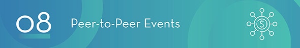 As mentioned above, many peer-to-peer campaigns are structured with one or more community engagement or fundraising events at the beginning, middle, or end. The scale of these events will depend on the scale of the campaign itself, but effective peer-to-peer events often share a few characteristics.