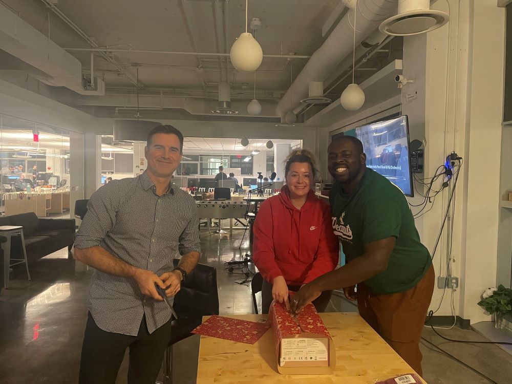 Here’s a part of the team wrapping gifts to participate in the Christmas toy drive for children at Homes First.