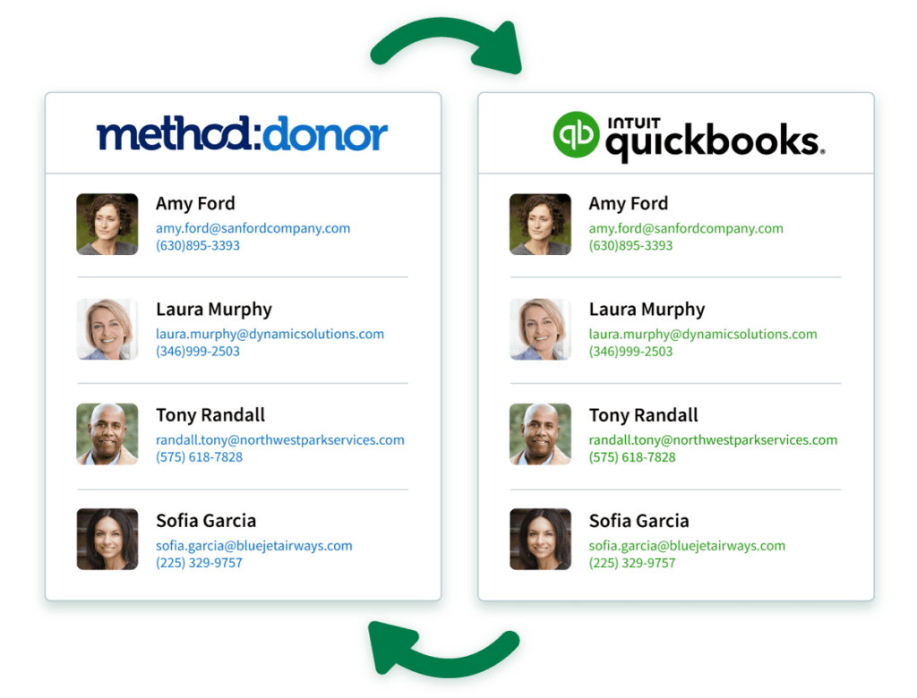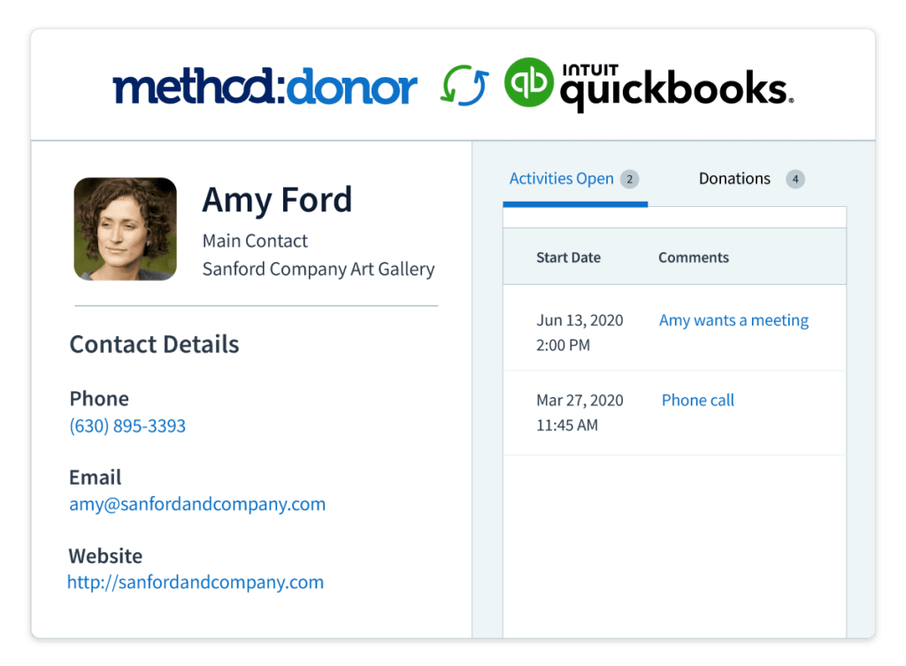 Method’s industry-leading integration with QuickBooks* keeps your accounting data clean and up to date. Add donors or enter donations in Method, then watch the changes sync to QuickBooks in real time.