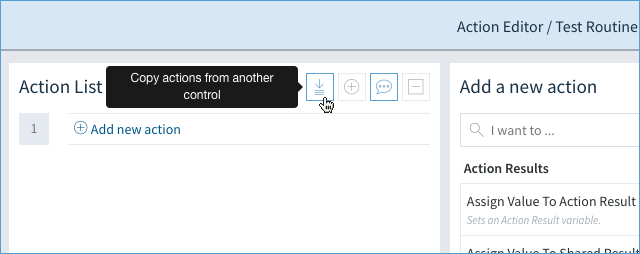 When creating your App Routine, you will see the Copy Actions icon at the top of Action List.