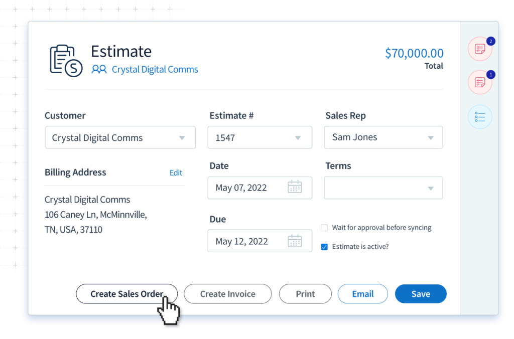 Empower your sales reps to create QuickBooks estimates immediately, without direct access to your accounting software.
